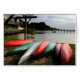 Farbenfrohe Kanus und Kajaks sind an den Außenbänken aufgereiht und stehen bereit zum Klängen.