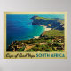 Diese schöne Szene ist ein neues Vintages Design, das das Kap der guten Hoffnung in Südafrika zeigt. Blaue Ozeane und grüne, grasbewachsene Klippen runden das Bild ab.