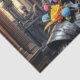Ein aufwändiges Gewebe-Papier-Design mit einem majestätischen Schädel mit Rüstung, mit lebhaften, bunten Blume, die aus seiner Krone und Schultern blühen. Set vor der Kulisse einer gotischen Kirche, mit mächtigen Arkaden und dunklen, faszinierenden Details, erinnert dieses Design an eine eindrucksvolle Schönheit. Der Kontrast zwischen dem kalten Stahl der Rüstung und den lebhaften, zarten Blütenblättern schafft ein Gefühl von Leben und Tod verwoben. Perfekt für decoupage Projekte, dieses Gewebe Papier fügt eine Touch von Eleganz und Geheimnis zu jeder Schöpfung.