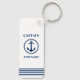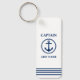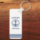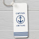 Nautical Sea Anchor Kapitän Name hinzufügen oder Bootsname Navy Blue auf White Schlüsselanhänger.