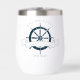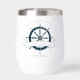 Chic custom cruise wine tumbler für einen Ozeanliner, der an die Küste reist. Dieses nautische Design verfügt über ein marineblau Lenkrad, um Ihren Sommerausflug zu begehen. Personalisieren Sie mit Ihrem Nachnamen und Jahr für einen Bootsführer auf dem Meer.