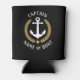 Ein Personalisierter Can Cooler mit Kapitän oder anderem Titel und Ihrem Bootsnamen, Familiennamen oder anderen gewünschten Text. Mit einem speziell entwickelten nautischen Bootsanker, goldenen Blätter und Sternemblem auf schwarz oder ändern Sie einfach die Grundfarbe nach Belieben. Macht ein großartiges Geschenk für jeden Anlass.