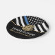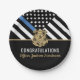 Ein guter Weg, um dem neuen Rentner oder Absolvent für ihren Ruhestand oder Abschluss von der Polizeiakademie zu gratulieren. Dieses Design verfügt über eine Polizeiflagge mit schwarz-weißen Streifen und einen dünnen blauen Streifen. Passen Sie den Namen des im Ruhestand befindlichen oder schließend Vollzugsbeamten, Sheriffs, Kapitäns oder Chefs an. Feiern Sie diesen Meilenstein im Stil!