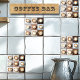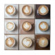 Süßes Bild von Kappuzino-Kaffeetassen auf verschiedenfarbigen kleineren Fliesen. Erstellen Sie ein süßes Thema für Kaffeeliebhaber in Ihrer Küche mit dieser geprägten Keramikfliese. DIES IST EIN GEDRUCKTES BILD