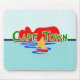 © Sunny Mars Designs - Cape Town South Africa Mouse Pad - Dieses coole, maßgeschneiderte, südafrikanische Reisestandard Mousemat oder Mousepad bietet eine farbenfrohe abstrakte niedliche Cartoon Vektorgrafik des Tafelberges von Kapstadt, des Ozeans und einer kleinen Yacht, in südafrikanischen Flaggenfarben. Sie können ihn personalisieren, indem Sie ihm Ihren Namen oder einen anderen Text hinzufügen.