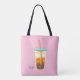Der Kaffee ist karamellfarben mit cremefarbener Kunst. Wenn Sie nicht genug eisigen Kaffee bekommen, ist das die Tasche, die Sie brauchen