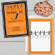 Diese flache Vorderseite in schwarz und orange mit Vorlagentext ist eine lustige Karaoke / skaraoke Halloween-Party Einladung. Die obere Grenze hat tanzende Skelette. Das passende Gespensterdesign ist auf der Rückseite zentriert. Personalisieren Sie den Vorlagentext für Ihr Party, entfernen Sie den Text oder bearbeiten Sie ihn mit dem Entwurfstool, um einen Schriftart auszuwählen, den Sie möchten.