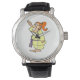 Uhr, Klassische Damenuhr mit schwarzen Lederarmband