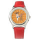 Kinderuhr aus Edelstahl mit rotem Lederarmband