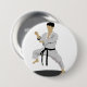 Schlagen Sie eine fantastische Karate-Pose gerade wie diese. Diese Person ist dort in der Karateausstattung und sie sind in einer Karate-Pose. Diese Karateperson trägt einen schwarzen Gürtel. Dieser Karate-Poseentwurf schaut auf diesem Knopf groß. Vervollkommnen Sie für selbst oder als Geschenk