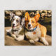 Corgis galore. Die Postkarte enthält sowohl Cardigan als auch Pembroke Welsh Corgis!