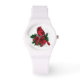 Handgezeichnete Vektorgrafik eines Kardinal-Vogels auf einem Strauß Poinsettia, Tannen und Beeren