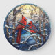 Kardinal auf der Schneedecke Große Wanduhr