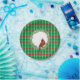 Dieses Design hat einen grünen Hintergrund mit rot-weißen Linien, die ein Muster von Quadraten bilden. In der Mitte gibt es einen weißen Kreis mit einem immergrünen Kranz und Kardinal.