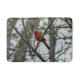 Ein männlicher Kardinal sitzt in meinem Mimosa-Baum im Frühjahr.