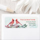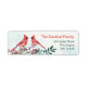 Elegantes Rücksendelabel mit grünem Blattwerk, roten Beeren und zwei Kardinälen.