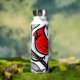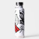Dieser fette Kardinal ist illustriert in einem Tätowierkunststil, mit Blätter von fließenden schwarzen Linien und einem chiperroten Feathering Freund. Personalisieren Sie mit jedem Namen für eine atemberaubende Wasserflasche, die die Natur mit künstlerischem Flair feiert.