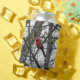 Ein männlicher Kardinal sitzt in meinem Mimosa-Baum im Frühjahr.