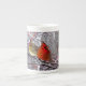 Zwei helle Kardinäle in einem schneebedeckten Wald.