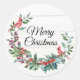 Kardinal Frohe Weihnachtswasserfarbe Wreath Runder Aufkleber