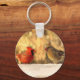 Hier ist ein Schlüsselanhänger mit Herrn und Frau Northern Kardinal. Es ist Herbst mit glorreichen Blättern im Hintergrund, aber der erste Schnee ist gefallen, um uns eine Vorschau auf den Winter zu geben. Er ist eine brillante rote Farbe. Sie ist orange, gold und braun. Beide haben Wappen und orangefarbene Schnabel. Sie sind wahrhaftig das Königtum der Hinterhofvögel mit ihrem unverwechselbaren Lied und ihren schönen Farben.