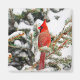 Männlicher Kardinal in einem schneebedeckten Kiefer