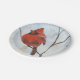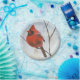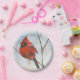 Eine winzige Aquarellmalerei eines brillanten, männlichen Kardinal-Vogels mit seinen Federn puffte sich auf, um an einem kalten Wintertag warm behalten.