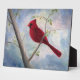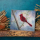 Aus einem originellen Gemälde von Brenda Thour eines männlichen Kardinals, der auf einem nackten Baumzweig mit einem abstrakten blauen und rosa Himmel sitzt. Copyright by Brenda Thour 2005.