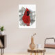 Dieses Poster hat einen brillanten roten Kardinal. Er ist wahrhaftig der König der Hinterhofvögel! Hier steht er auf einer schneebedeckten Bahn, die schwarze Ölsonnenblumenkerne frisst, während der Winterschnee um ihn herum Wirbel macht.