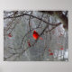 Männlicher Kardinal auf einem Zweig an einem schneebedeckten Tag.