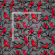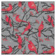 Schönes graues Gewebe gemustert mit handgezogenen Roten Kardinälen auf Waldzweigen mit roten Winterbeeren