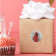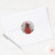 Dieser Aufkleber weist einen brillanten roten Kardinal auf. Er ist wahrhaftig der König der Hinterhofvögel! Hier steht er auf einer schneebedeckten Bahn, die schwarze Ölsonnenblumenkerne frisst, während der Winterschnee um ihn herum Wirbel macht.