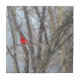 Ein männlicher Kardinal und eine schwarz gekappte Chickadee sitzen während eines Schneesturms in meinem Rotblütenbaum.
