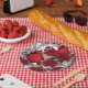 Kardinal und Poinsettia in Rot und Weiß Pappteller