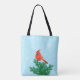 Kardinal-Vogel auf Kiefernbaum mit Wildbeeren auf hellblauen Tote Bag. Schöne und moderne Tragetaschen!