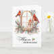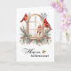 Ein sanftes Design mit hellroten Kardinälen an einem Winterfenster, das von Grün und Beeren geprägt ist. Diese Karte, die geschaffen wurde, um die Geister eines Unwohlhabenden zu heben, bietet Wärme und Ermutigung durch die Schönheit der Natur und eine herzliche Botschaft.