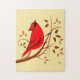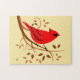 Dekorative Rote Kardinal auf Puzzles mit wirbelnden Ästen und Herbstfarben-Blätter