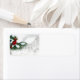 Schöne Kardinal im Schnee mit dem Hintergrund einer alten Mühle im Winter, Label für Ihre Ferienkarten oder Geschenke.