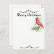 Roter Kardinal Weihnachtskarte mit grüner Garland. Frohe Weihnachten.