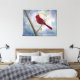 Aus einem originellen Gemälde von Brenda Thour eines männlichen Kardinals, der auf einem nackten Baumzweig mit abstraktem Blau und Rosa sitzt. Copyright by Brenda Thour 2005.