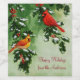 Ein Paar männlicher und weiblicher nördlicher Kardinäle, die sich auf mit reifen Beeren bewachsenen, holzigen Zweigen aufsetzen. Bild erstellt aus einem originalen Ölgemälde von Crista Forest.