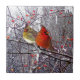 Zwei helle Kardinäle in einem schneebedeckten Wald.
