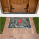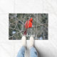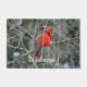 Heller roter NordKardinal ist ein lebhafter erster Eindruck auf starker Türmatte.