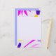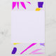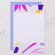 Stiele und Blätter in Fuchsia, Blau und Orange erscheinen am Rand dieses Schreibpapiers. Der zentrale und der umgekehrte Teil sind Lavendel.