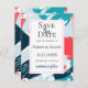 Moderne abstrakte Farbstriche in brillanten karibischen Korallen, Türkis und Blau, die Hochzeit speichern die Datumskarte. Personalisieren Sie Stil, Farbe und Größe des Schriftartes.