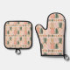 Karibischer Stammbaum: Boho Dark Green, Pink Ofenhandschuh & Topflappen-Set