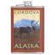 Karibu-Szene - Cordova, Alaska - Vintages Reise-Plakat wurde im Jahre 2007 geschaffen. Dieses Bild stellt Szenen von Cordova, AK dar.