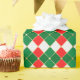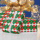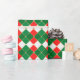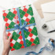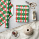 Traditionelles rotes, grünes, goldfarbenes und weißes geometrisches Tessellationsmuster kariert mit goldenen Details. Bauernhof Land rustikale Ferien Muster Geschenkpapier verpackt. Ideal für Weihnachten und die Ferienzeit.