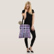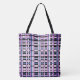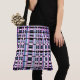 Diese überdruckte Tasche besticht durch eine moderne Drehung in karierten Orchideentönen, Schieferblau, Schwarz und Weiß.