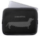 Personalisierter Laptop-Ärmel für Sausage Hundeliebhaber oder Liebhaber von allem, was stilvoll und ein wenig sonderbar mit länglicher Dackel in schwarz kariert auf einem schwarzen Hintergrund.